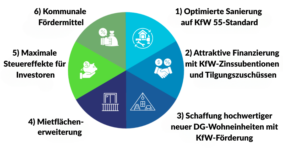- Mehrere staatliche Förderprogramme kombinierbar (KfW, Sonder-AfA)